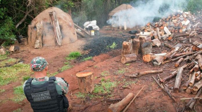 Agentes do 2º BPMA (Batalhão da Polícia Militar Ambiental) em Amambai atenderam uma denúncia anônima e realizaram a fiscalização de uma carvoaria instalada no perímetro urbano da cidade de Coronel Sapucaia, nesta quarta-feira (12).
