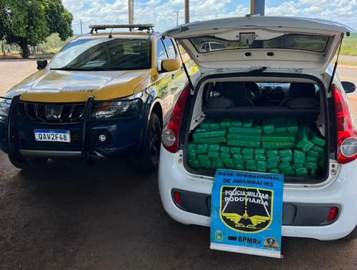 Na manhã desta quarta-feira (21/01), durante fiscalização na MS-156 (km 242), no trecho entre Amambai e Tacuru, equipes do BPMRv apreenderam aproximadamente 200 quilos de maconha, distribuídos em 214 tabletes, que estavam acondicionados no porta-malas e banco traseiro de um veículo.