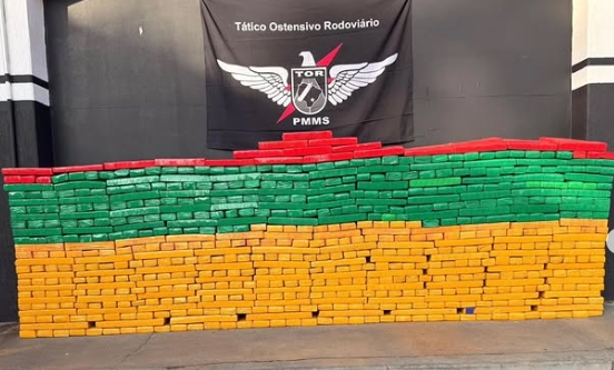 Equipe do Tático Ostensivo Rodoviário-TOR, apreendeu 558 quilos de drogas, na rodovia BR 163, município de Caarapó, na madrugada do dia 22 de fevereiro de 2026, por volta das 03h30.