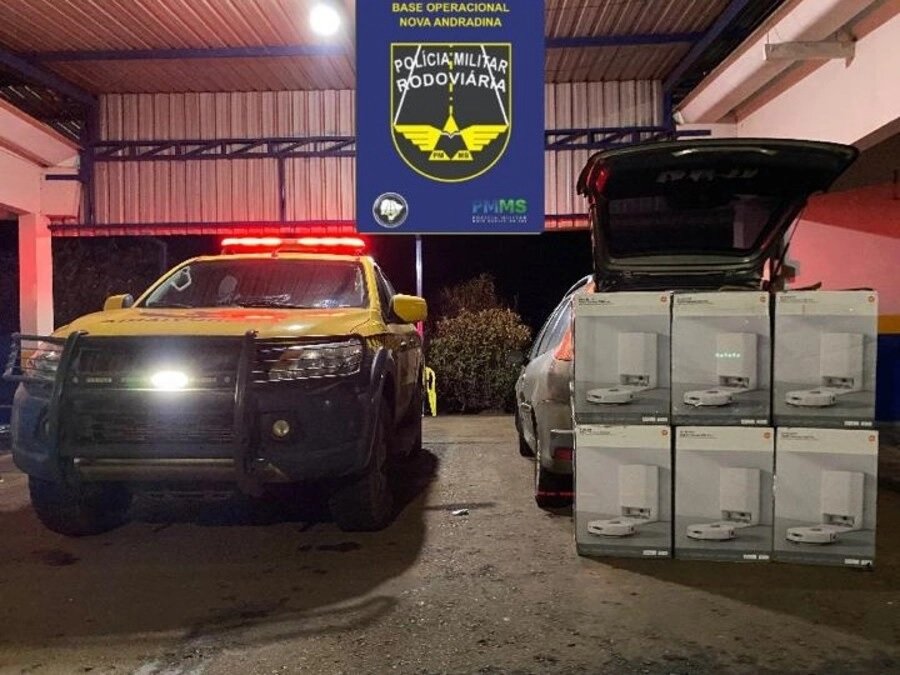 a carga de robôs aspiradores de origem estrangeira sem a devida comprovação aduaneira. A abordagem ocorreu no km 88, na região de Nova Casa Verde, distrito de Nova Andradina.