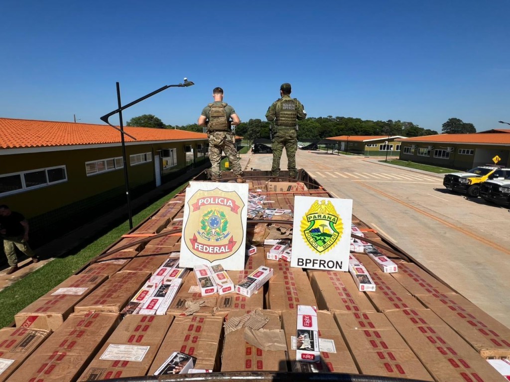 O caminhão e toda a carga ilícita foram apreendidos e encaminhados à Delegacia da Polícia Federal em Guaíra/PR para as providências cabíveis.