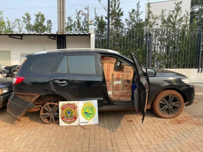 A ação resultou na apreensão de um veículo e cerca de 40 caixas de cigarro.