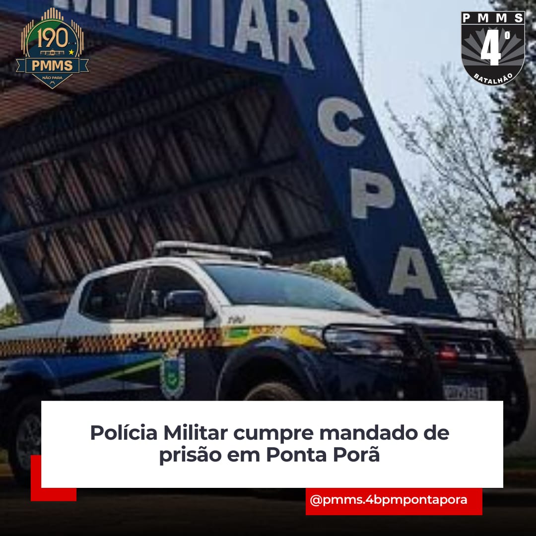 O mandado de prisão, registrado nos sistemas SIGO MS e BNMP, foi cumprido sem incidentes. O indivíduo foi conduzido à primeira Delegacia de Polícia Civil para as providências legais.