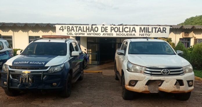 Na tarde de domingo (06/02) Policiais Militares, lotados no 4º BPM realizavam rondas ostensivas quando foram acionados via 190 sobre uma ocorrência de roubo a mão armada de uma caminhonete Hilux de cor branca que acabara de ocorrer em frente a uma farmácia na região central da cidade.