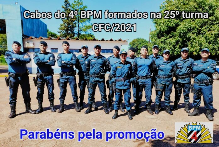 O curso foi realizado em Campo Grande no período de 27 de setembro a 25 de novembro de 2021 e na data de hoje os 13 novos Cabos da Polícia Militar se apresentaram no 4º Batalhão, onde já iniciarão suas atividades na nova graduação.