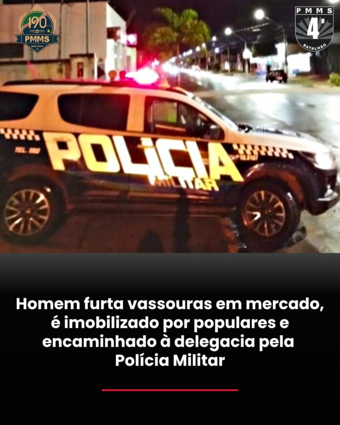 Populares relataram que o suspeito foi visto tentando esconder duas vassouras, objetos que teriam sido subtraídos do estabelecimento comercial. Ao perceber que havia sido descoberto, o homem tentou fugir, mas foi contido por moradores até a chegada da equipe policial.