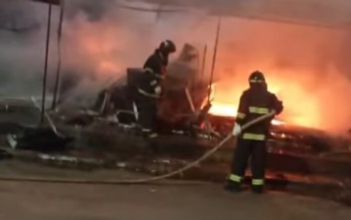 Incêndio destruiu lojas na Linha Internacional entre Ponta Porã e Pedro Juan Caballero, fronteira entre Brasil e Paraguai, na noite desta terça-feira (2). Nas imagens divulgadas pelo Corpo de Bombeiros, é possível ver que o fogo devastou as estruturas de diversos comércios.