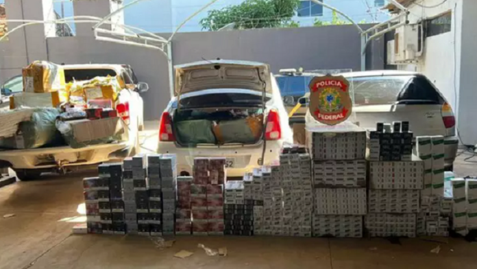 As prisões foram coordenadas pela PF (Polícia Federal) e ocorreram durante abordagem de rotina de dois veículos. Foram flagrados aproximadamente 500 pacotes de cigarros, centenas de cigarros eletrônicos e pneus de origem estrangeira.