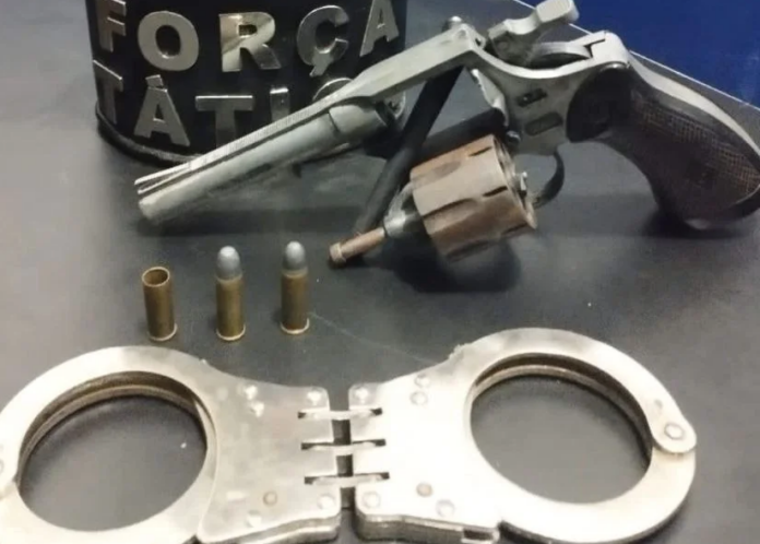 De posse das informações, a equipe policial de Força Tática do 4º BPM, após autorização da vítima, adentrou à residência para procurar o autor e a arma de fogo. O autor foi localizado no interior da casa e, logo após a busca pessoal, os policiais verificaram o guarda roupas, onde encontraram uma arma de fogo do tipo revólver, calibre .32, marca Doberman, com duas munições intactas e uma deflagrada.