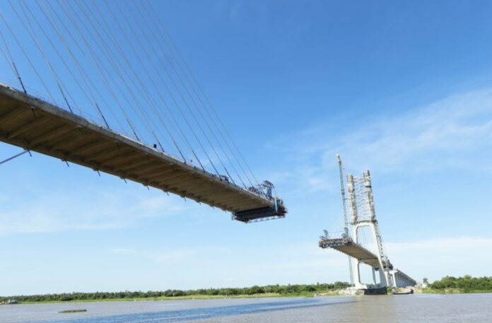 Obra icônica para a economia sul-americana, a Ponte Internacional da Rota Bioceânica, que vai ligar o município sul-mato-grossense de Porto Murtinho a Carmelo Peralta, no Paraguai, chega à etapa final da estrutura de ligação entre os dois países. Com 1.294 metros de extensão e 21 metros de largura, faltam cerca de 101 metros para o fechamento total da ponte. A aduela de fechamento – nome técnico que une as estruturas, mas popularmente chamado de “beijo” das aduelas – está prevista para ser concluída no final de maio, segundo informações dos responsáveis pela construção.