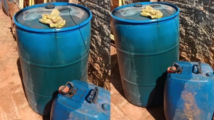 Foi localizados cerca de 600 litros do combustível distribuídos em galões e tambores.