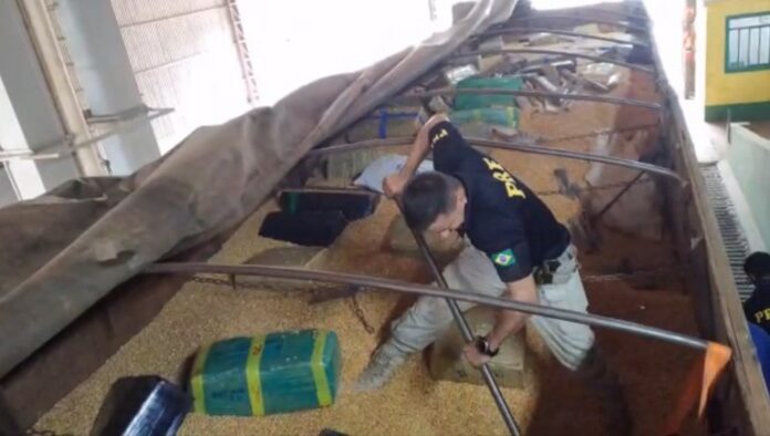 Enquanto os policiais retiravam a lona do reboque, o suspeito empreendeu fuga a pé através da vegetação próxima. Ele não foi localizado. Na carreta, os PRFs encontraram a droga escondida em meio a carga de milho. Também foram apreendidos 94 Kg de skunk.
