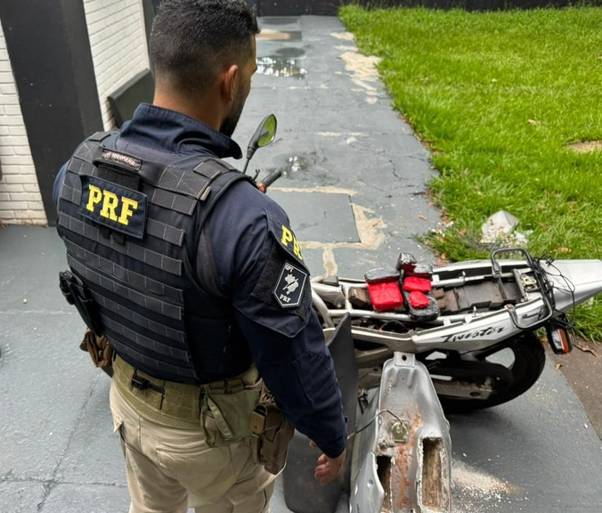 Polícia Rodoviária Federal (PRF) prendeu um homem com cocaína escondida na motocicleta, nesta terça-feira (2), em Dourados (MS).