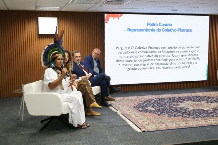 O painel da Secretaria Nacional de Pesca Artesanal contou com a participação de vozes dos povos das águas, que relataram os impactos climáticos nos territórios pesqueiros e as principais demandas dos pescadores e pescadoras artesanais.