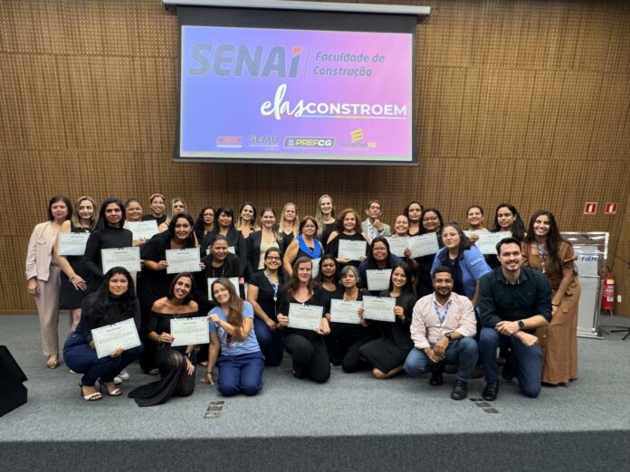 O Senai de Mato Grosso do Sul formou a primeira turma do Brasil do projeto Elas Constroem, voltado para qualificação de mulheres para atuar na construção civil. Em solenidade realizada na semana passada, 40 mulheres receberam o diploma de conclusão dos cursos de segurança na operação de minicarregadeira (Bobcat), pintor de obras imobiliárias e assentador de revestimentos cerâmicos.