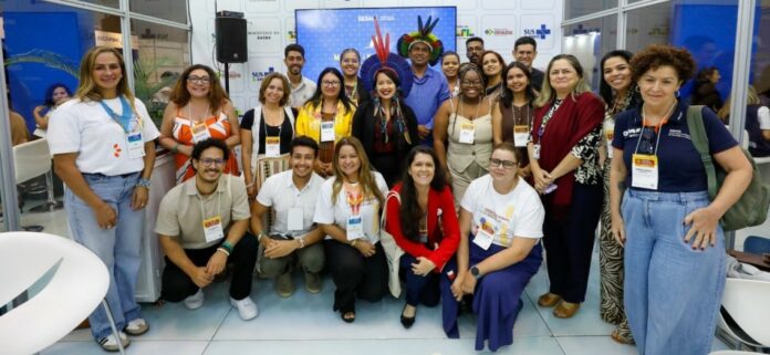 Gestão da saúde – No estande do Ministério da Saúde, o secretário de Saúde Indígena, Weibe Tapeba; a chefe de gabinete da Sesai, Milena Kanindé; e a diretora de Atenção Primária à Saúde Indígena, Putira Sacuena, fizeram uma participação especial sobre gestão na saúde indígena, onde apresentaram os desafios e diferenciais de uma gestão feita por indígenas e para indígenas.