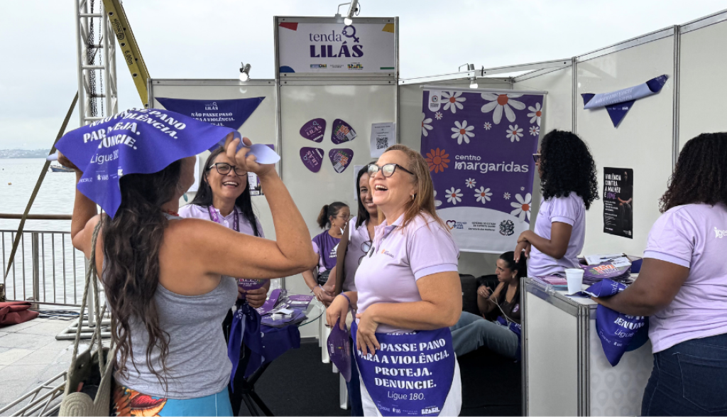 Instalada como espaço de acolhimento e orientação, a Tenda Lilás ofereceu informações sobre direitos, funcionamento da rede de atendimento, canais de denúncia e serviços disponíveis no estado. A iniciativa integra a estratégia do Ministério das Mulheres de ampliar o acesso às políticas públicas e fortalecer a prevenção à violência de gênero.
