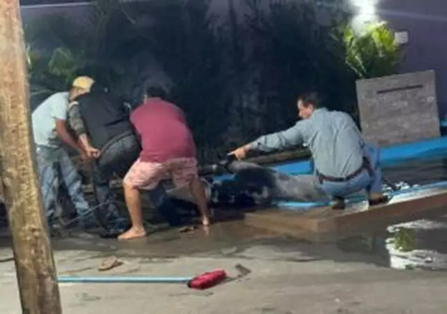 Ao sair para verificar, a surpresa: um touro se debatia dentro da piscina. O animal, completamente desorientado, permaneceu cerca de 45 minutos na água. “Fechei a porta correndo, fiquei com muito medo. Se demorasse mais, ele podia ter morrido afogado”, contou Jean Carla.