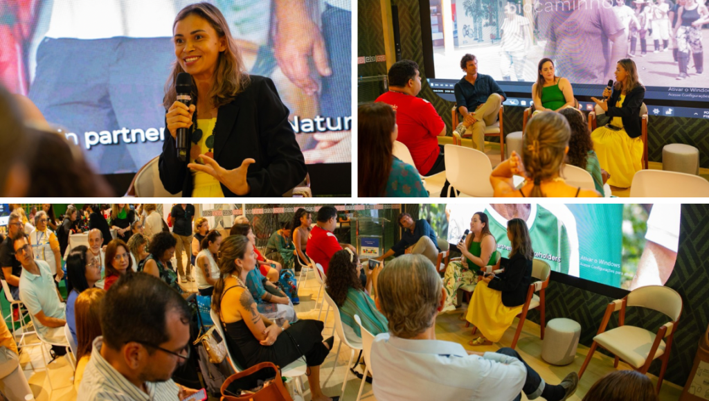 A coordenadora da Natura compartilhou ainda os resultados do projeto-piloto nas comunidades Cantaly e Procam, que receberam cerca de 45 visitantes cada. Foi a primeira vez que esses territórios vivenciaram uma experiência turística dessa escala. O roteiro foi preparado com todo cuidado: uma manhã de visita guiada, um almoço comunitário e momentos de imersão com banho de igarapé e o tradicional banho de cheiro — expressão viva da cultura amazônica. Essas comunidades trabalham com essências e perfumes, e uma delas abriga a primeira microindústria de essências da Amazônia. O vídeo exibido na COP30 mostra exatamente essa força da identidade local e o protagonismo das comunidades no processo de desenvolvimento sustentável.