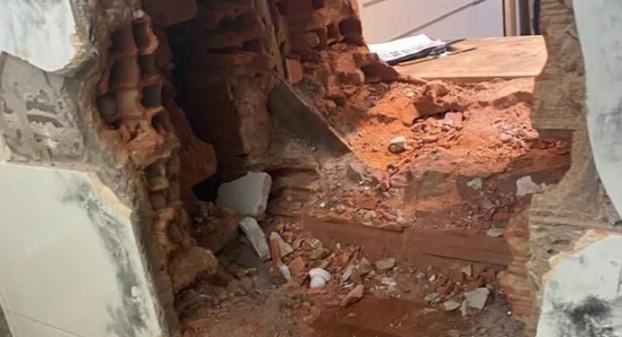 Os criminosos quebraram a parede do estabelecimento e levaram tudo.