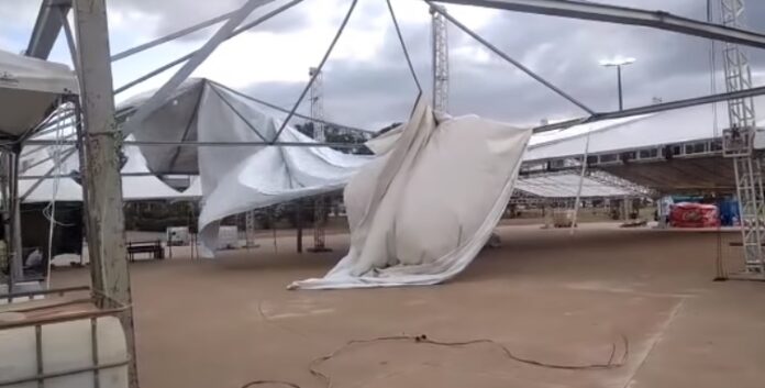 O evento marcado para acontecer no Parque dos Ervais faz parte da programação do aniversário de 110 anos da cidade, comemorado em 18 de julho. Parte da cobertura das barracas chegou a ser arrancada pelo vento.
